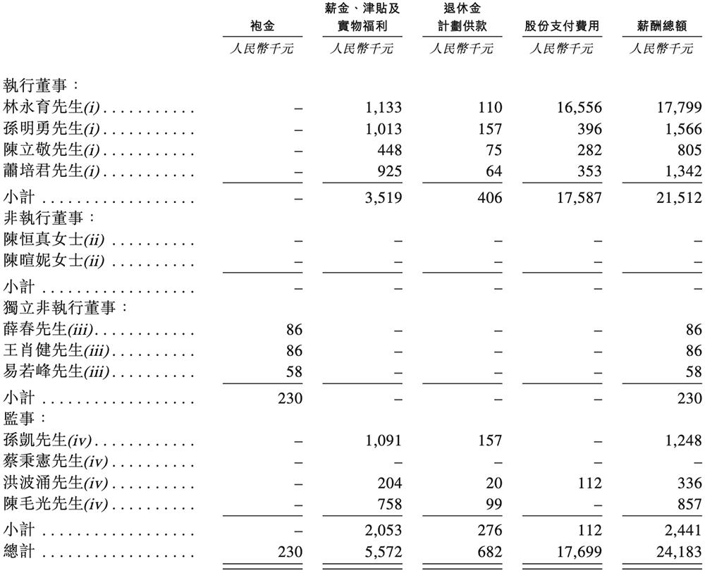 2024年,星宸科技董事、主要行政人员及监事薪酬如下: