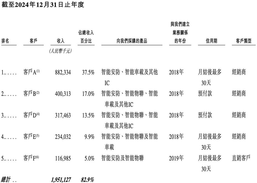2022年、2023年、2024年、2025年1-6月,前五大客户合共贡献收入分别占星宸科技总收入的86.5%、86.9%、82.9%、88.7%。
