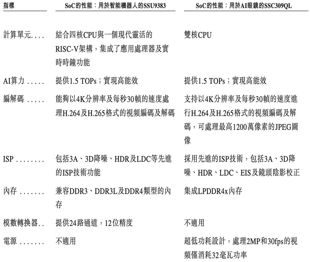 其代表性智能机器人视觉SoC及AI眼镜SoC所能达到的关键技术指标如下: