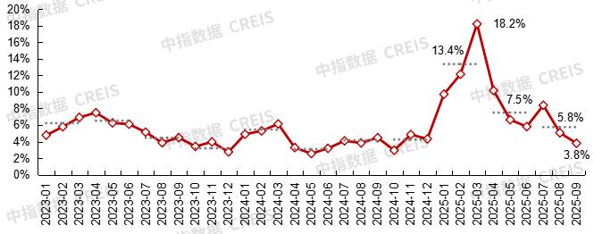 一季度住宅用地平均溢价率保持较高水平,二季度后有所回落,三季度降至低位。自2022年末重点城市取消地价上限以来,至2024年一季度,300城住宅用地平均溢价率保持在6%左右,多数城市底价成交是常态。2025年开年,随着去年四季度新房销售出现阶段性修复,土地市场也迎来积极变化,北京、上海、深圳、杭州、成都等热点城市土拍有所升温,多宗地块拍出高溢价率,一季度300城宅地平均溢价率达13.4%;二季度尤其是5月以来,由于热点城市核心地块供应力度减弱,同时房企投资保持审慎态度,土地市场出现明显降温,平均溢价率降至7.5%;三季度房企拿地继续保持审慎态度,平均溢价率为5.8%,其中7月受个别地块带动,溢价率阶段性提升,但8月核心城市土拍减少,溢价率再次回落,9月300城宅地平均溢价率降至3.8%,是今年月度最低水平。