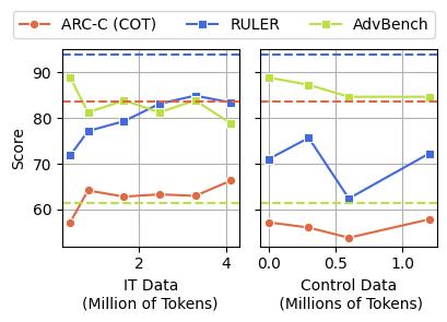 - 部分但不完全的恢复:扩大指令调优和干净数据的预训练能够改善认知衰退,但无法恢复到基准水平,表明存在持续的表现漂移,而不是格式不匹配问题。