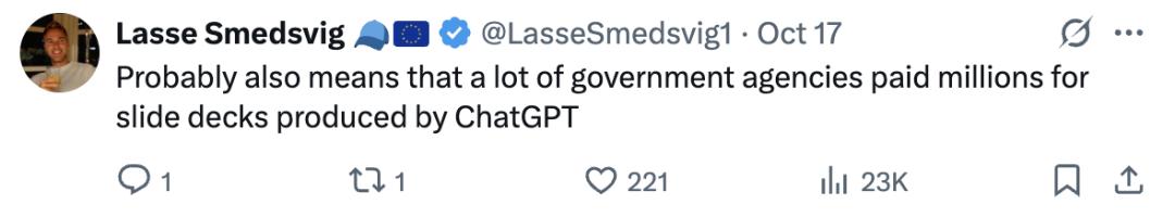 这大概也意味着,很多机构花了数百万美元购买的战略咨询PPT,其实是ChatGPT制作的。