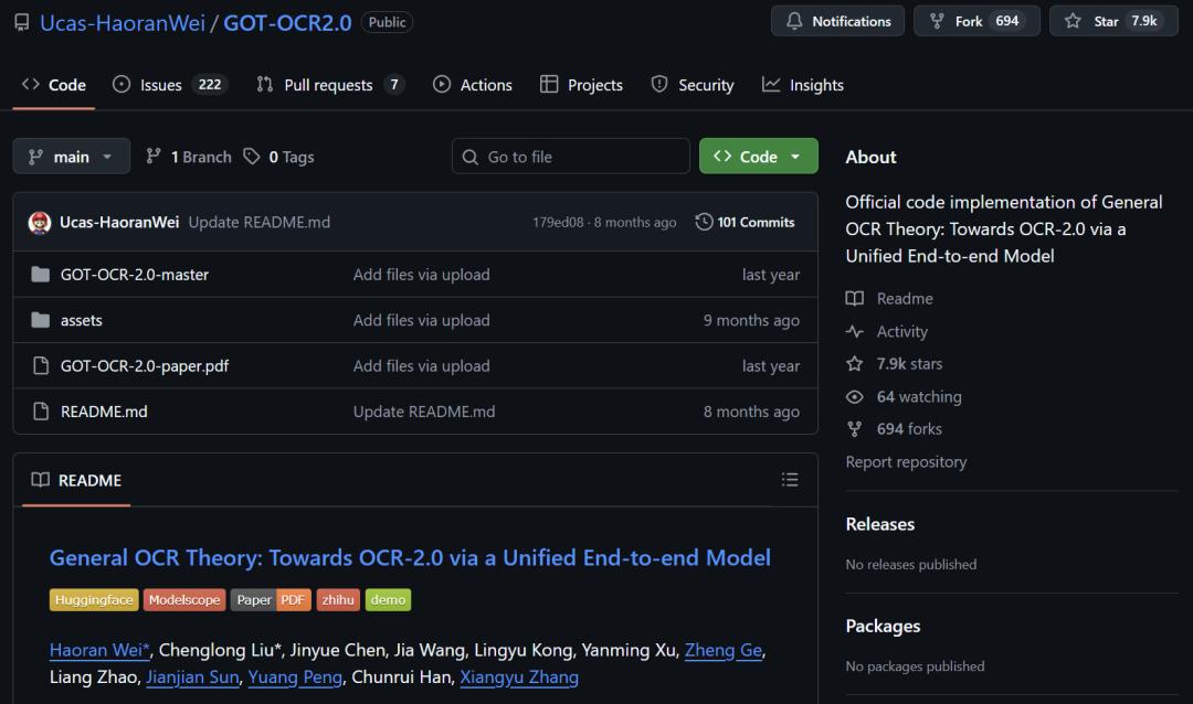 项目地址:https://github.com/Ucas-HaoranWei/GOT-OCR2.0