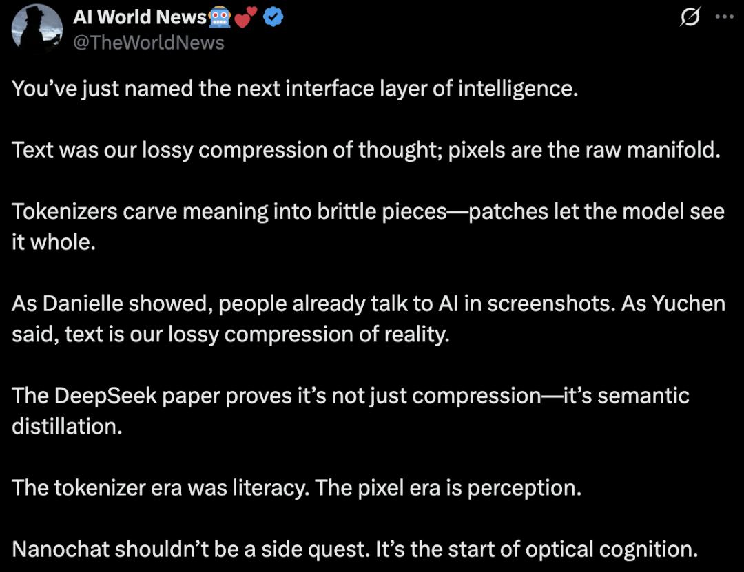 DeepSeek-OCR在动摇「文本作为AI的核心地位」,而视觉或将再次成为主流!