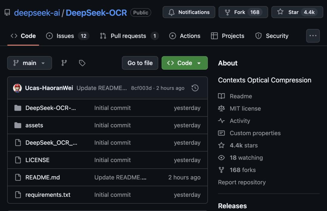 Github开源项目DeepSeek-OCR,一夜收获4.4k星🌟: