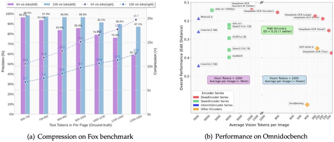 一整页密密麻麻的文本,被压成仅仅100个视觉Token,在 OmniDocBench上实现最多60倍压缩!