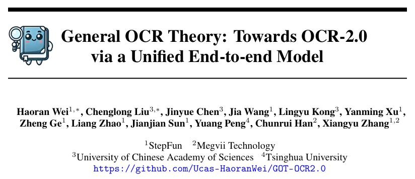论文一作Haoran Wei,此前也是GitHub 7.9k星爆火项目GOT-OCR2.0,即「General OCR Theory: Towards OCR-2.0 via a Unified End-to-end Model」的一作。