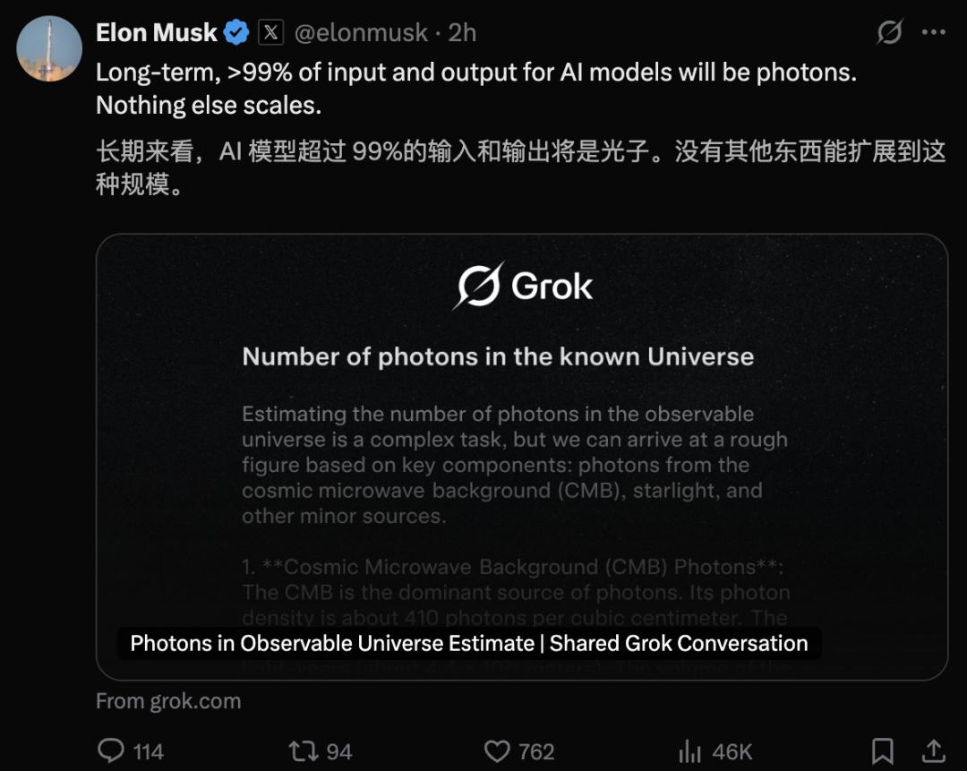 马斯克让Grok估计了一下已知宇宙的光子总量: