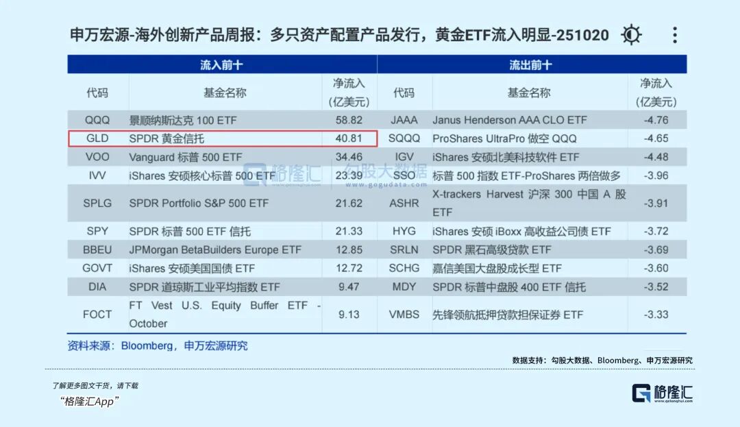 数据显示,截至2025年10月20日,内地黄金主题ETF总规模达2361.31亿元,较年初的730.53亿元增长1449.56亿元,增幅223%;年内黄金主题ETF年内资金净流入1017亿元,而其中不少增量是在9月金价开启新一轮暴涨行情之后出现的。