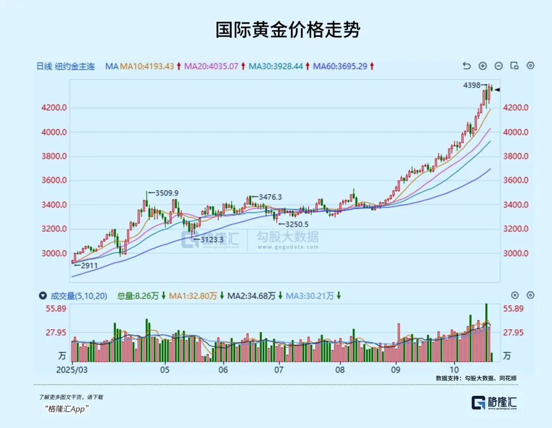在昨晚,国际黄金主力期货价格大涨3.82%收报4398美元/盎司,离下一个整数大关仅一步之遥。