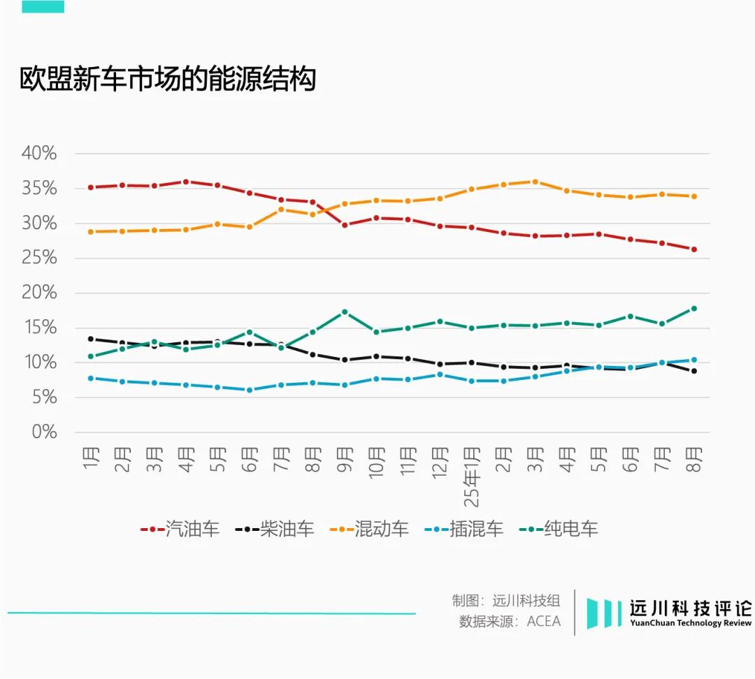 同时,海外市场的新能源车渗透率普遍偏低,即便电动化转型相对进取的欧洲,近几年纯电车渗透率也在15%左右呈躺平状态。