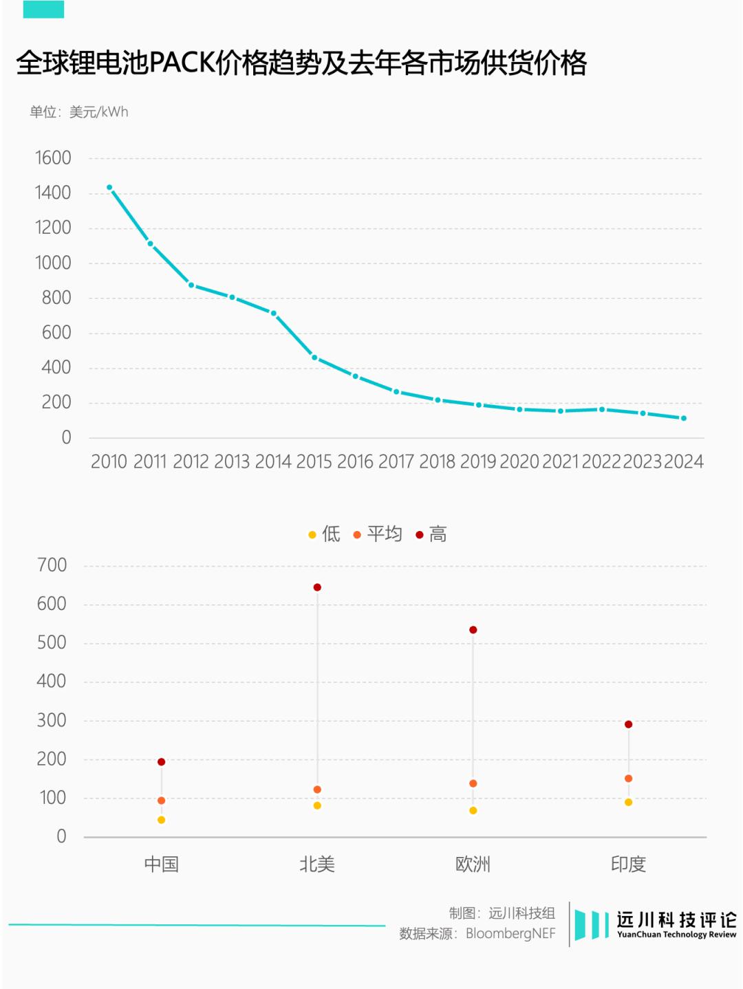按照彭博新能源财经的口径,去年全球锂电池PACK均价降至115美元/kWh,但分布极不平均。