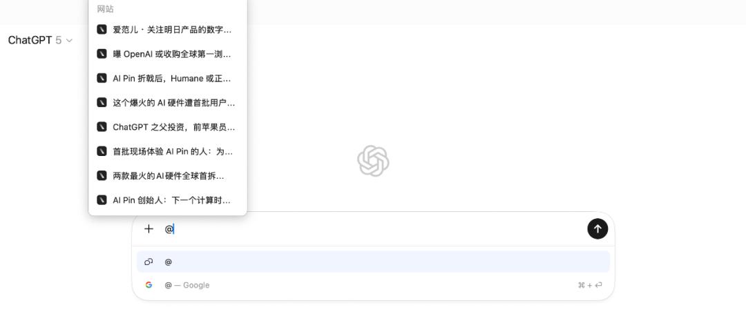 顾名思义,前者 Google 选项直接跳转到常规搜索引擎页面,后者则类似常见的 AI 聊天助手,调用 ChatGPT 模型直接给出答案,而且你在 Atlas 上的每个提问都会保留在你的 ChatGPT 账号历史聊天记录里。