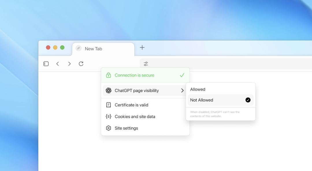 在安全与隐私保护方面,用户可以控制ChatGPT在自己浏览时可以看到和记住的内容,包括清除特定页面、清除整个浏览历史记录或打开隐身窗口以暂时注销ChatGPT。