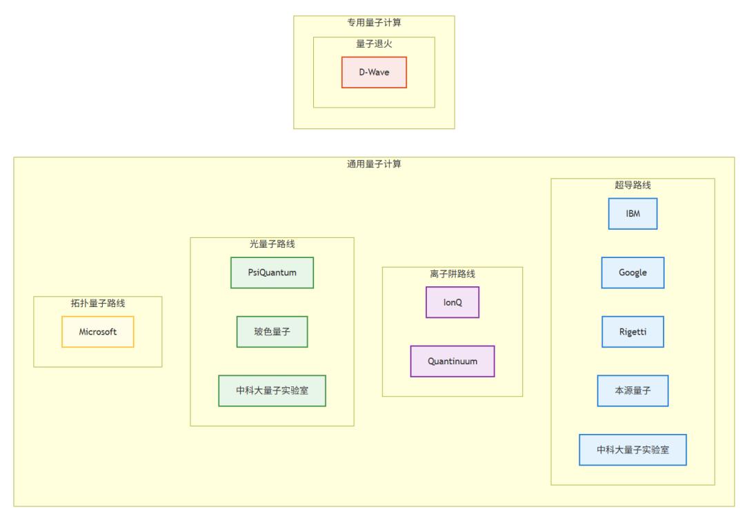 目前量子计算领域的主要参与者可以分为两类,分别是科技巨头和专业公司,前者侧重生态布局,后者尝试单点突破,我们分别来看。