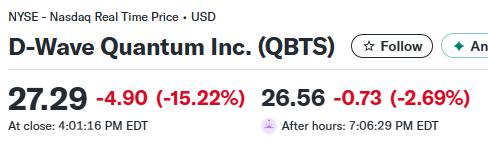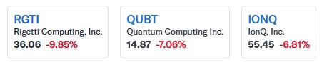 今天的量子计算概念股重挫,QBTS暴跌15%,RGTI也跌近10%,QUBT跌超7%,IONQ跌近7%。