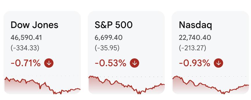 周三美股市场最初的下行压力主要源于公司盈利前景的担忧。奈飞(NFLX)第三季度盈利远逊于市场预期,并下调了全年业绩指引,开盘即暴跌超7%,收盘时跌幅扩大至10%,原因在于与巴西税务机构的纠纷拖累了其财报表现,这无疑给本已脆弱的投资者信心带来了沉重打击。