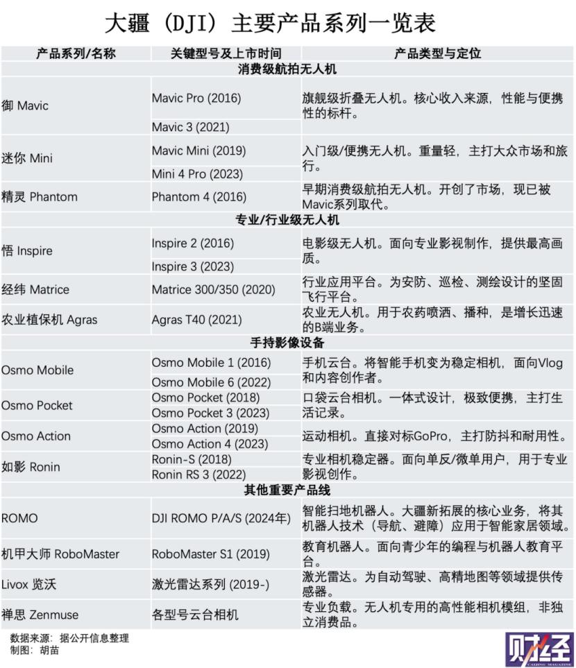降价的背后,是大疆的核心业务面临新挑战。大疆的业务包括航拍无人机、手持摄影设备、储能及家居科技、行业应用等。其中消费级无人机和手持摄影设备是大疆主要的利润来源。