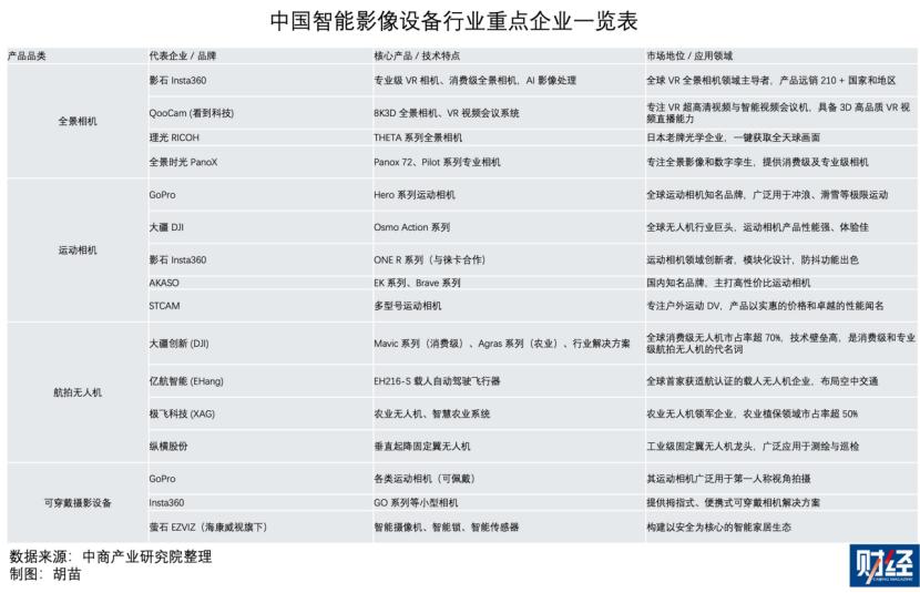智能影像设备是传统影像设备结合智能数字化技术演变而来,主要包括全景相机、运动相机、航拍无人机、可穿戴摄影设备等。