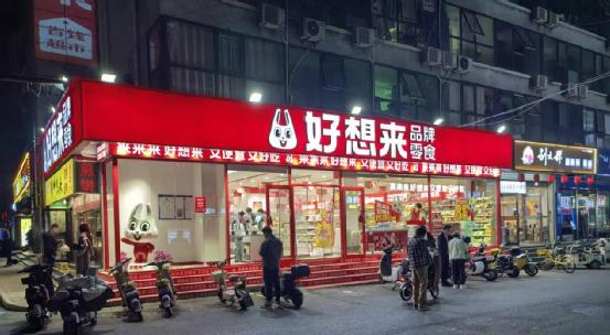 对于消费者而言,量贩零食总是打着“为大家省钱”的口号,将部分大包装产品“拆开卖,按斤称”。同时在线下,用大红色或亮黄色的门店装修,快速吸引人们的注意。就算是在黑天更早的北方市场,以好想来、赵一鸣零食为代表的量贩零食品牌,也往往从8点营业至23点,甚至是24小时“超长待机”。