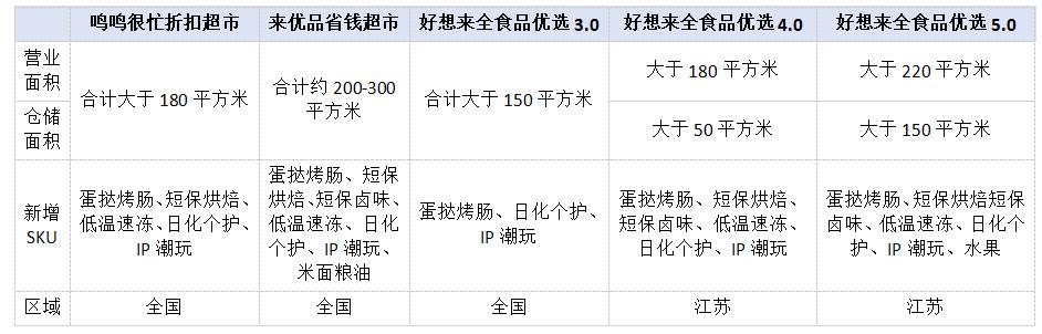 另一边的鸣鸣很忙,也在今年2月推出了两大自有品牌系列产品——主打质价比的红标、与高质量的金标。不久前,鸣鸣很忙还推出了3.0店型,新增了日化、文具、鲜食等多品类,致力于打造“一站式的硬折扣超市”。