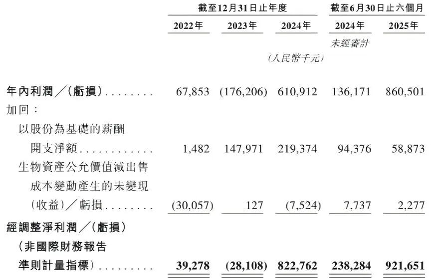 IPO招股书显示,2022年至2024年,万辰集团的营收分别为5.49亿元、92.94亿元、323.29亿元。同期,经调整后的归母净利润为0.39亿元、-0.28亿元、8.23亿元。