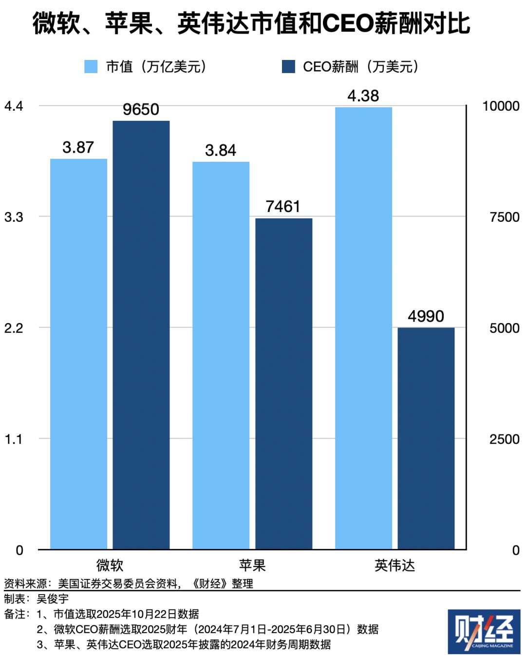 微软CEO纳德拉的薪酬高于苹果CEO蒂姆·库克(Tim Cook)、英伟达CEO黄仁勋。