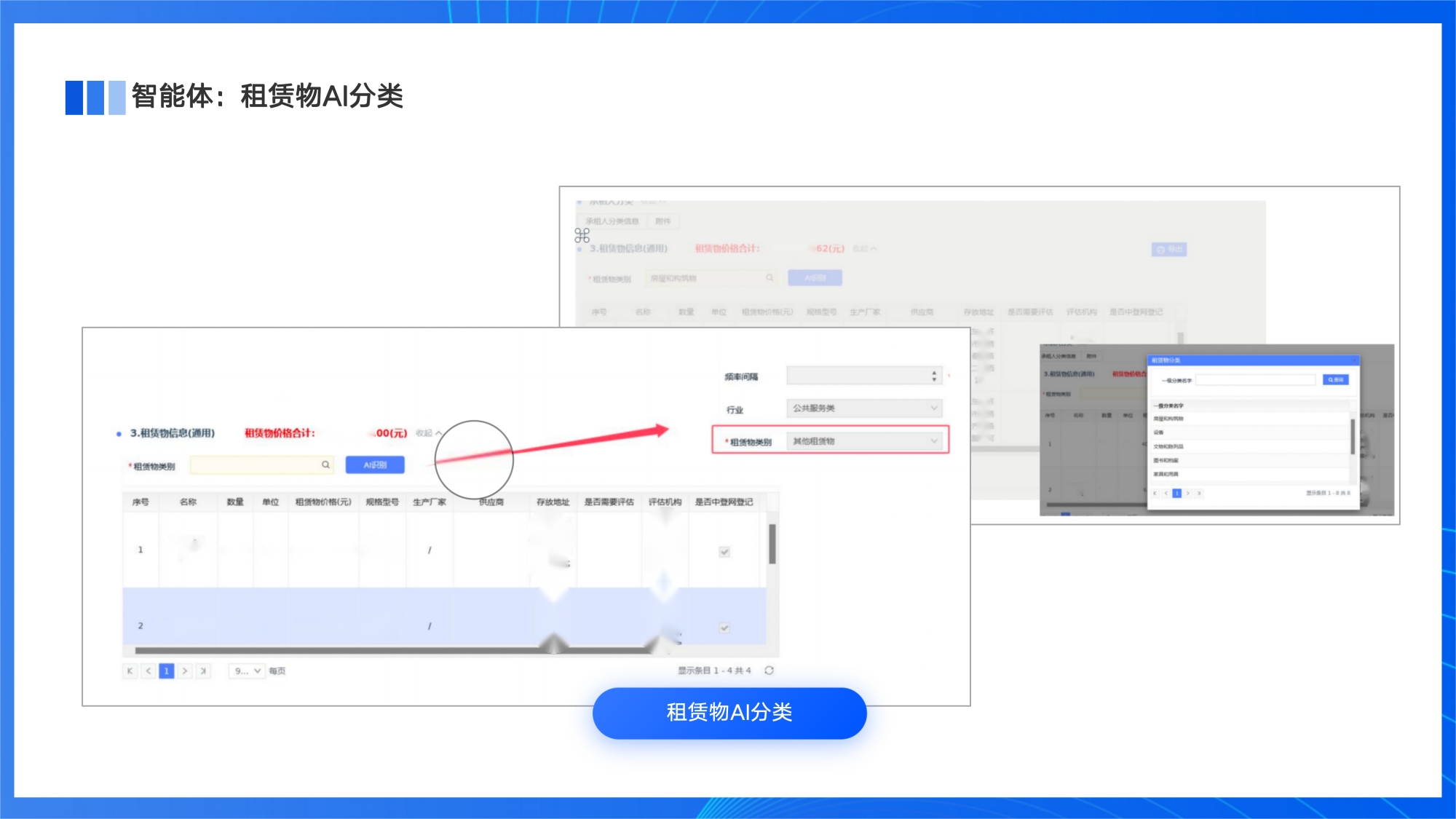 智能体广场平台的能力,在实际业务中已经轮廓清晰。在内部治理层面,AI正系统性地提升运营精度与效率——从将简历筛选耗时从“五分钟”压缩至“五秒钟”的机器人,到自动判断合规路径的审批助手,再到依据国标对租赁物进行精准分类的系统,人工智能将员工从大量基础工作中解放出来,实现了“修身健体”的初步目标。