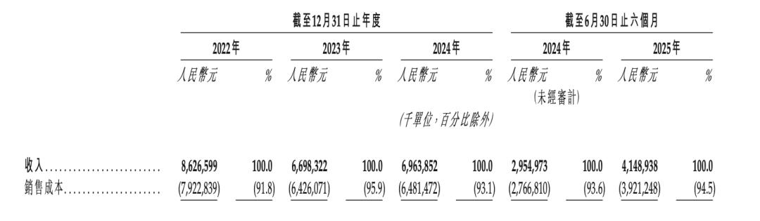 招股书显示,2022年、2023年、2024年和2025年前6个月,千里科技来自吉利集团的收入分别为34.23亿元、22.49亿元、21.44亿元及13.78亿元,分别占千里科技收入的39.7%、33.6%、30.8%及33.2%。