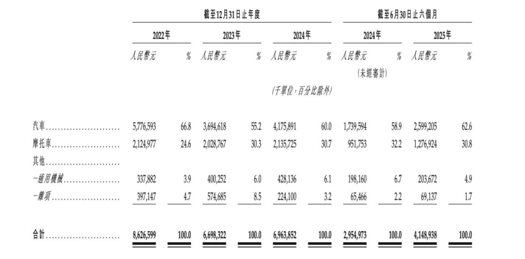 不过,拆解收入结构可见,千里科技2025年上半年来自汽车领域的收入为26亿元,占营收的比例为62.6%;来自摩托车的收入为12.77亿元,占营收的比例为30.8%。