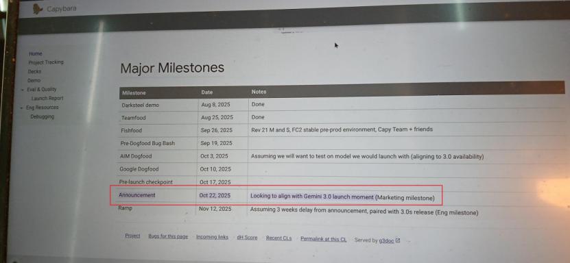 即使OpenAI 10月22日发布Atlas浏览器,时间选择也是卡着对标谷歌的点。10月20日谷歌AI Studio负责人预告“将有重大更新”后,业界流传一张录屏,称Gemini 3 将在10月22日宣布、11月12日上线。Atlas浏览器的发布时间有强烈的“截胡”意图。