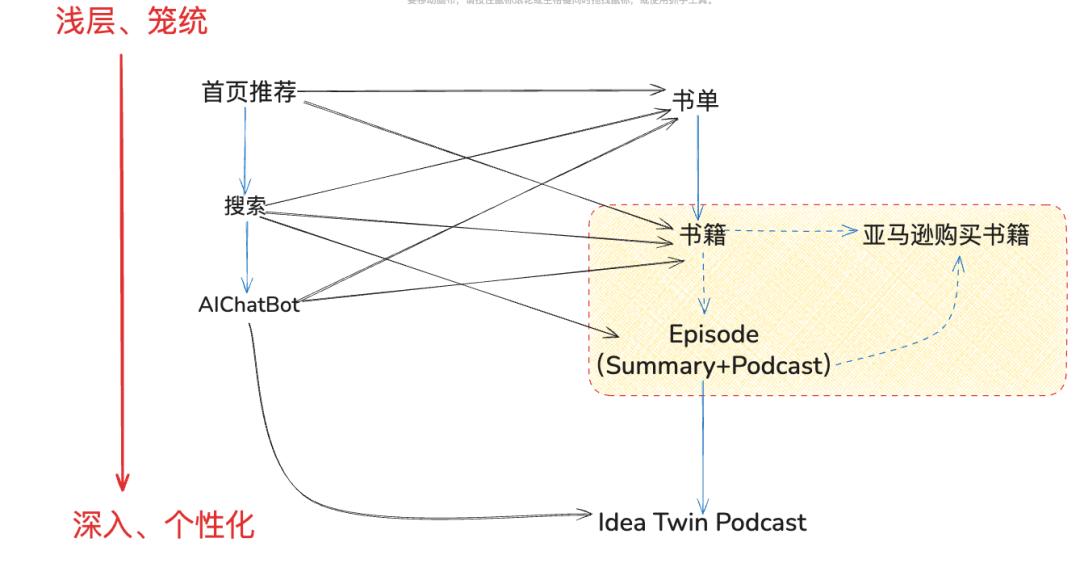 结合上文对 Aibrary 的分析,目前 Aibrary 已经通过具有梯度的推荐体系和内容体系建立起了个性化内容分发机制,而选择播客这样的形式,则考虑到当代用户较为碎片化的使用习惯;Idea Twin Podcast,则对应引发思考的个性化内容。而如何建立起良好的反馈机制,并用 AI 丰富更多引发思考的个性化内容,则是团队下一步迭代的重点。