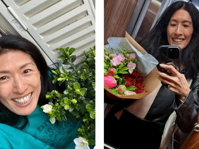 我所有的窗台上都放着花,家里有很多盆花,我很精心地照料我的植物。有时我觉得可能是最后一年了,但它们总会再一次盛开,通常这时我会和它们自拍一张,因为花开得太好了,生命总给人带来惊喜。
