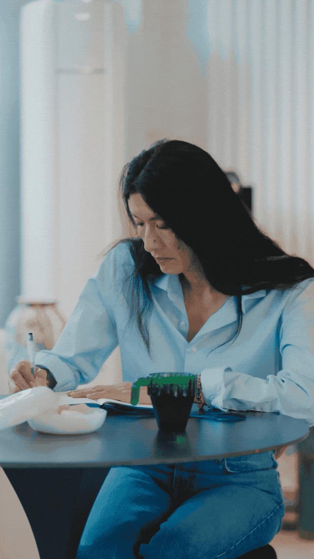 黄现喜在写作,她的社交媒体贴文都是自己亲自写的随笔