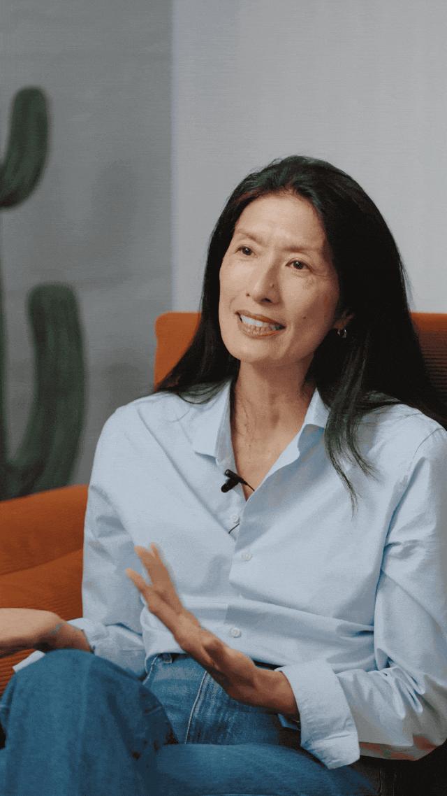 她为巴黎世家、Lemaire、Helmut Lang等顶级品牌走秀,登上《Vogue》杂志封面,甚至被巴黎世家创意总监Demna Gvasalia称作“灵感缪斯”她优雅、反叛又洒脱的气质,重新定义了50岁以上模特的意义,也刷新着国际时尚圈对于亚裔中年女性的刻板印象。