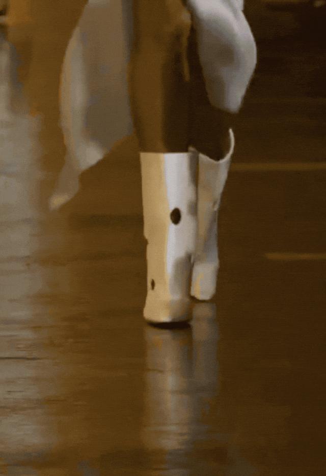 2020年,为Off-White 走秀。走秀的时候,我一直在问自己:“我在这儿干什么?”我不确定自己能否跟上,有点紧张。我想我的本能发挥了作用,我告诉自己:“别想了,只管往前走,目视前方,跟着别人,走下去就行了。走完再说。”当时确实有那么一阵恐慌。