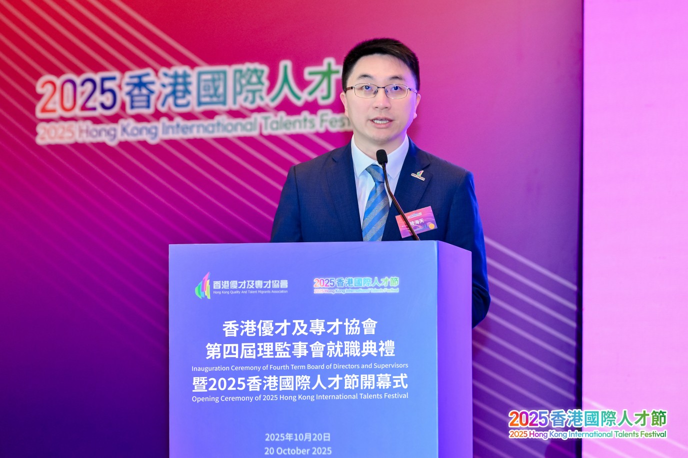香港特区政府律政司副司长张国钧作为主礼嘉宾发表致辞,充分肯定协会在引进人才、促进香港发展方面的重要贡献。他表示,特区政府将继续支持协会工作,期待协会继续发挥专业优势,为来港人才提供更多发展机遇,助力香港建设国际高端人才集聚高地,为国家发展贡献更大力量。