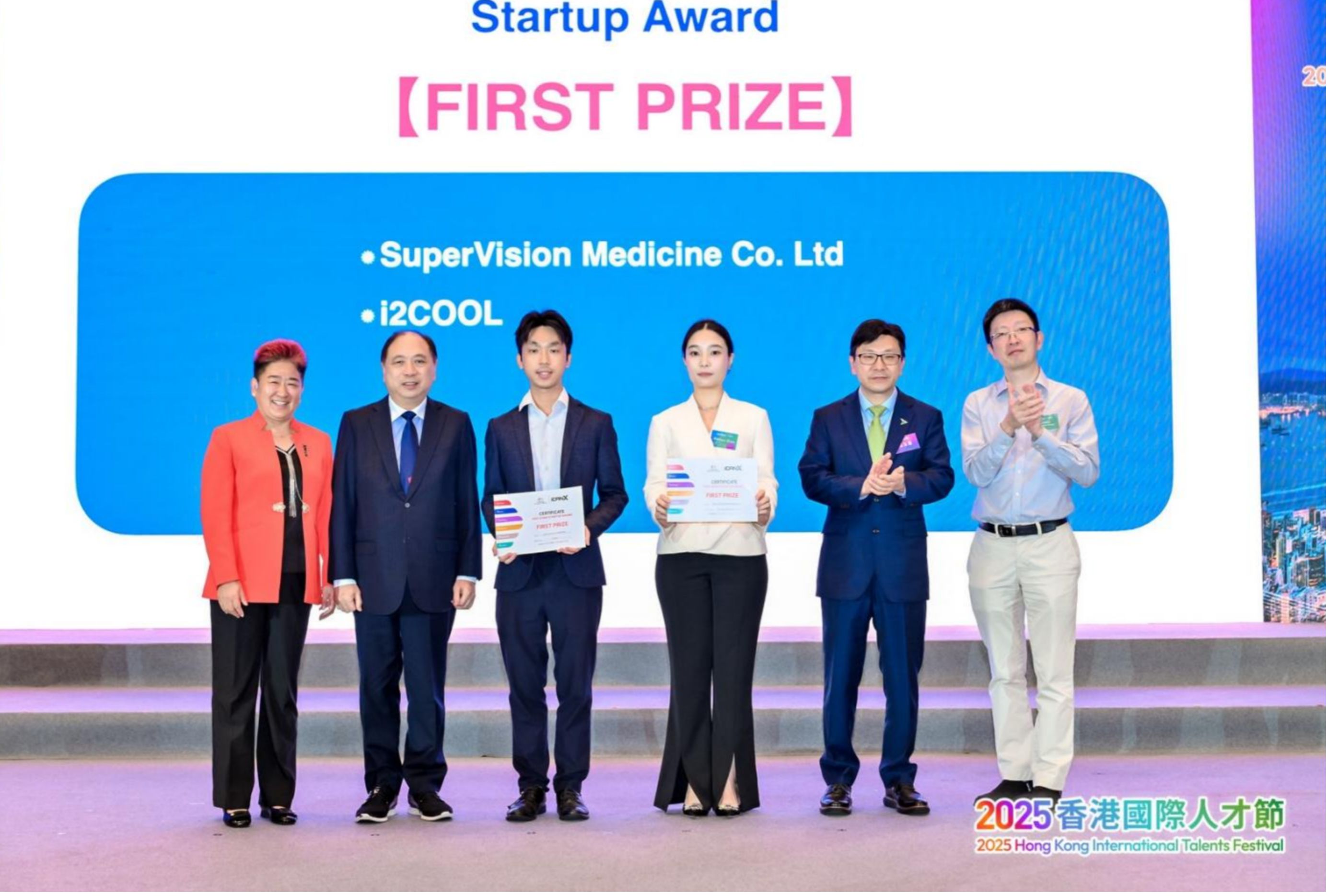香港特区政府劳工及福利局局长孙玉菡为iCANX创业奖一等奖得主颁奖