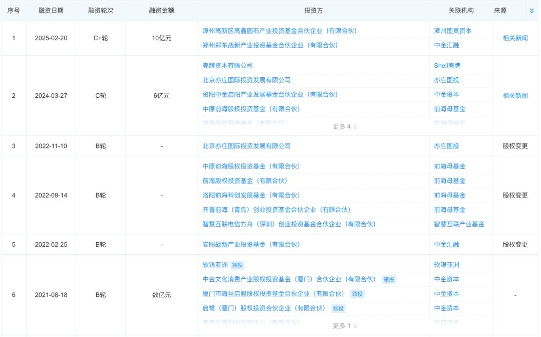 最近一次的C+轮则是2025年2月完成了10亿元人民币融资,由中金资本领投。