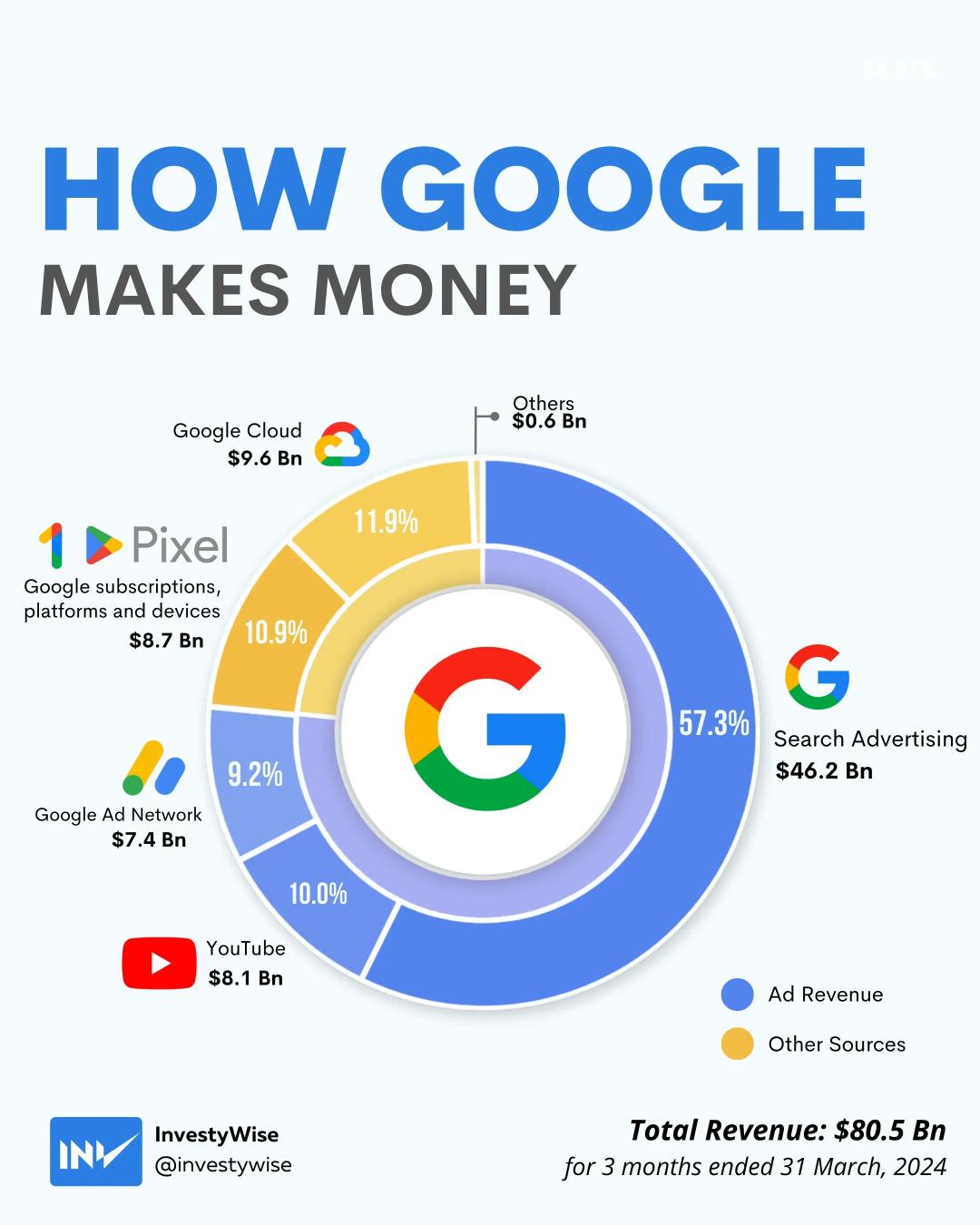 谷歌母公司Alphabet2024年收入构成:谷歌搜索占比57%