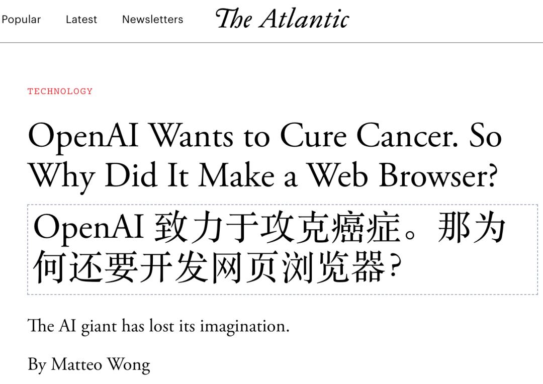 大西洋日报直接内涵《OpenAI你不致力于攻克癌症吗?为何要下场搞浏览器》: