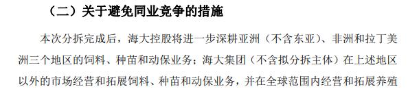 另一方面,与美的集团分拆安得智联、歌尔股份分拆歌尔微等赴港上市不同,海大集团分拆海大控股不是将单项业务独立分拆上市,而是将海外市场业务分拆上市,分拆重组之后,两者之间存在同业竞争关系。