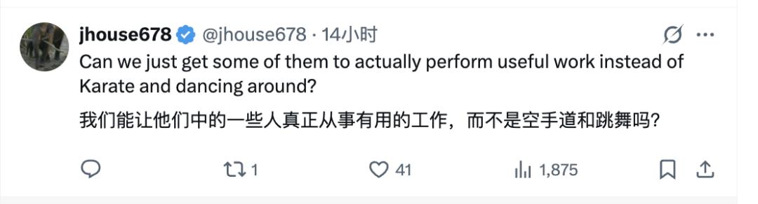 例如这个网友看了宇树的机器人后,不禁感慨,要是能给我打扫屋子就好啦~