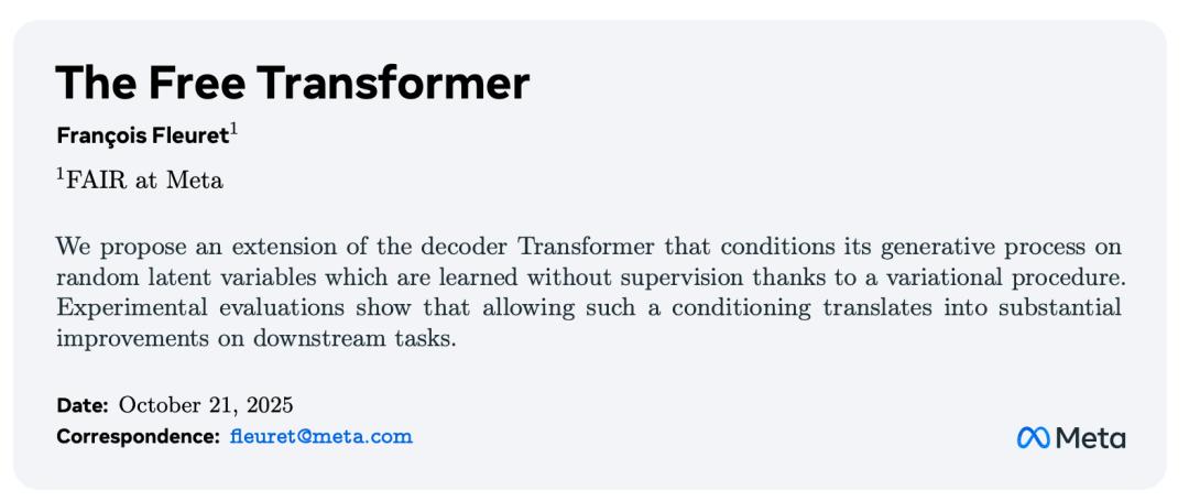 Meta推出「自由Transformer」(Free Transformer)新模型在AI架构领域引发社交媒体热议。