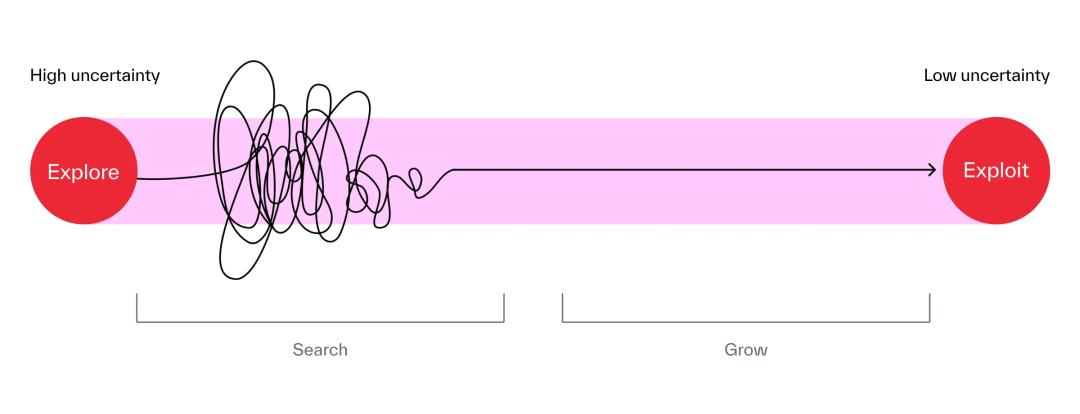 他从 AI 自身中引出一个类比,即「探索与利用」(exploration versus exploitation) 的权衡:当一个系统过度「利用」而「探索」不足时,它会找到平庸的局部最优解,同时错失更优越的替代方案。他认为:「我们几乎可以肯定,AI 行业目前就处于这种情况。」