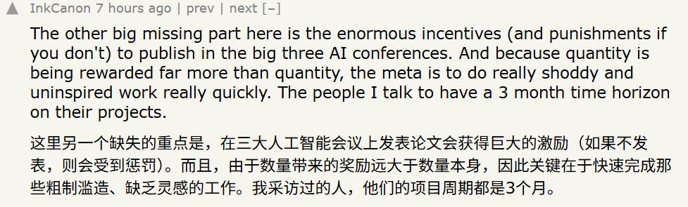 他说:「尽管(该领域)从未有过如此多的关注、资源、资金和人才,但这在某种程度上导致了我们正在进行的研究变得狭隘。」他认为,罪魁祸首是来自投资者的回报要求以及研究人员在过度拥挤的领域中争相脱颖而出的「巨大压力」。