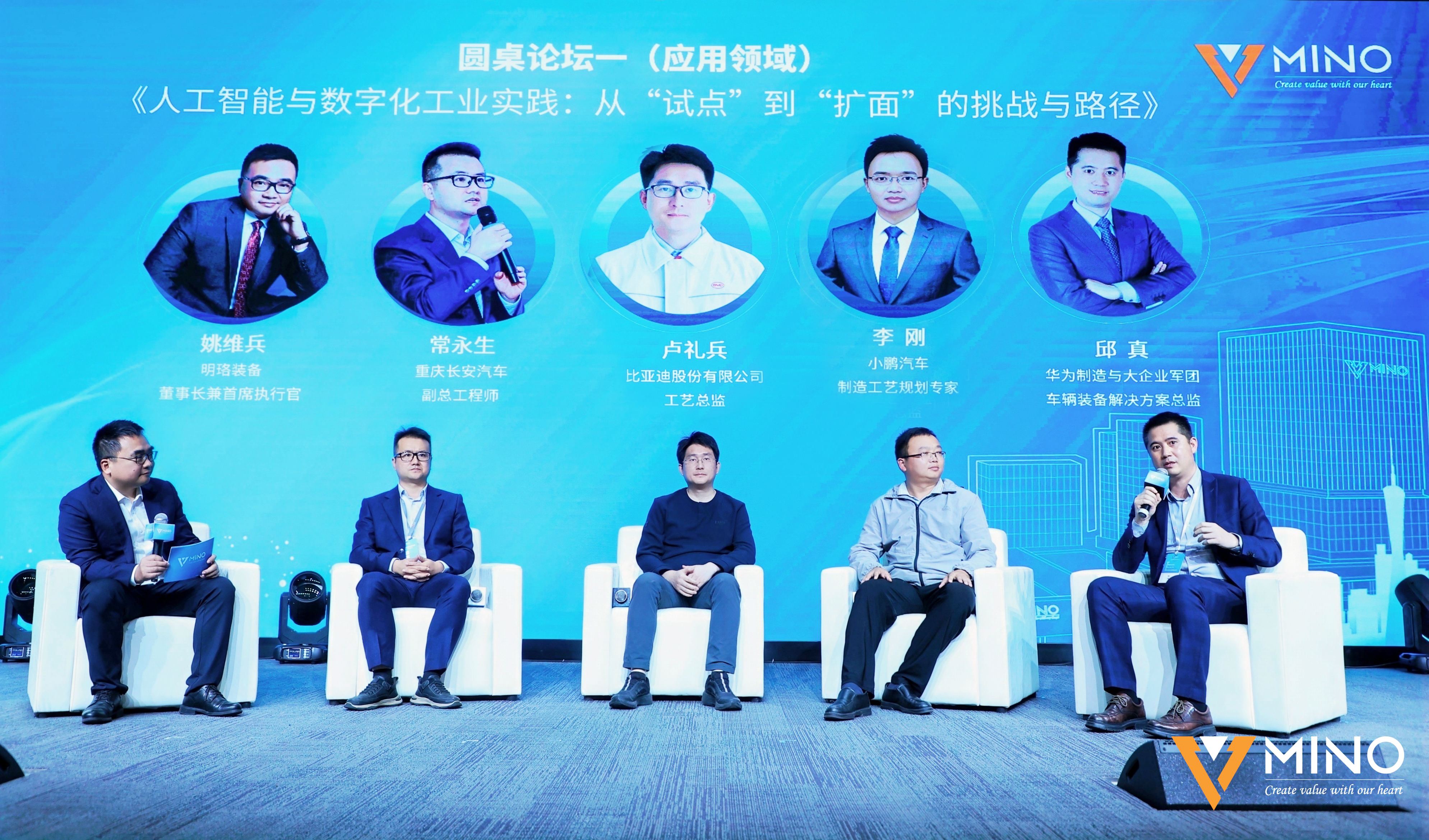 在论坛上午的圆桌论坛上,由明珞装备董事长兼首席执行官姚维兵主持,重庆长安汽车副总工程师常永生、小鹏汽车制造工艺规划专家李刚、比亚迪股份有限公司工艺总监卢礼兵、华为制造与大企业军团车辆装备解决方案总监邱真共同探讨了人工智能与数字化在工业领域的实践,从“试点”到“扩面”的挑战与路径。对话嘉宾认为,AI与业务场景深度融合,面临组织、泛化、数据可信等方面的挑战。他们建议,构建标准化场景,推动跨专业协同,分阶段推进AI落地。