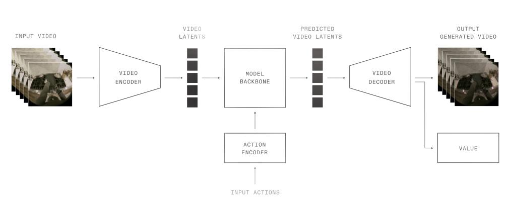 如图所示,1X世界模型包含视觉编码器、动作编码器、核心网络,以及视频与状态价值解码器。通过对成功标签进行监督学习生成的状态价值预测,可对输入动作的质量进行量化评估。