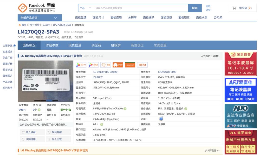 如果你不清楚具体的面板型号,可以挑选目前比较热门的显示器,然后再到屏库网(一个能找到各种显示器面板的数据库)查询它的面板型号。
