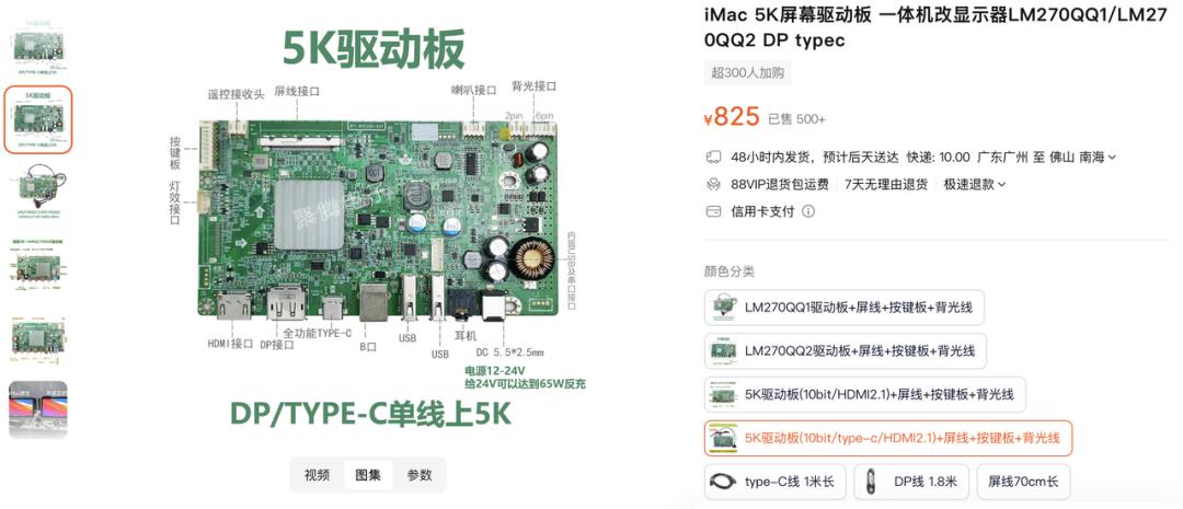 针对更为细致的需求,比如我用 Mac 就想追求一个桌面整洁,那就多花点钱选带 USB-C 一线通接口的。但如果不在意这些,选只有 DP 和 HDMI 接口的驱动板就行。